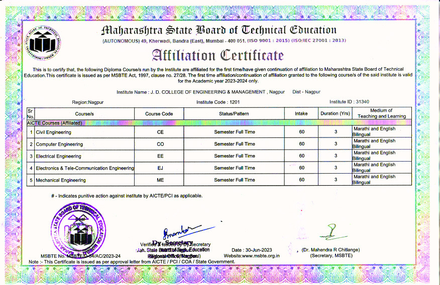 Our Polytechnic diploma courses are strictly affiliated to the Maharashtra State Board of Technical Education (MSBTE), ensuring our foundational engineers receive the most practical and industry-aligned education possible.